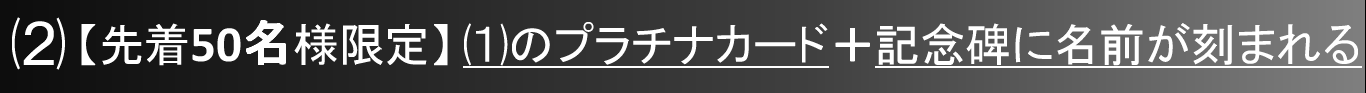 【先着100名様クラウドファンディング限定】で本レッスンがずっと0円で受け放題になるプラチナ会員カードを提供致します。本サービスが終了するまで、ご家族であれば誰でも・何回でも、お使いいただけます。例えばご支援者様のお孫さんもお使いいただけますし、更にそのお孫さんのお孫さんでもご使用いただけます。カード裏面に記載されている番号を使用していただくことで本サービスをご利用いただけます。そのため、カード及び番号の管理は厳重に行ってください。(番号のコピー・乱用を防ぐため、レッスンはひと月15回までとさせていただきます)。※写真はイメージであり、実際のものとは異なります。