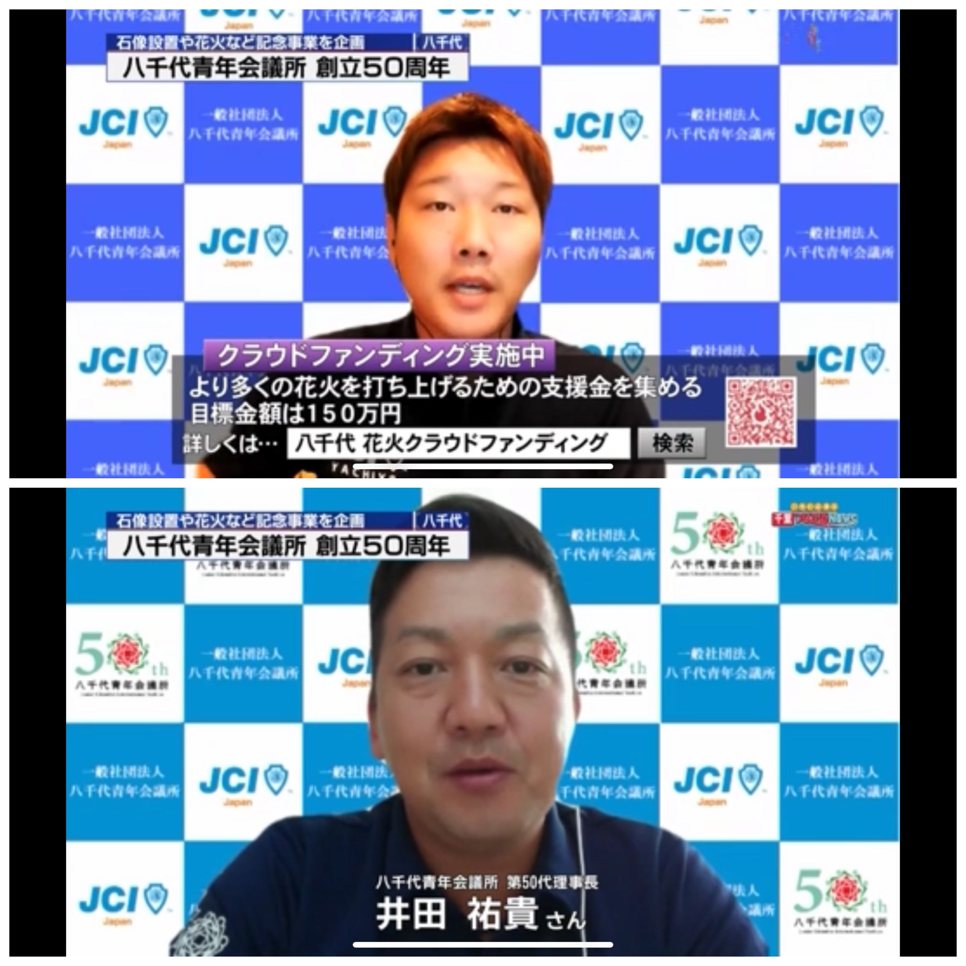 ご連絡が遅くなってしまいましたが、昨日の9/15 17:00からJ:COMでの活動について放送が行われました!J:COMに加入されていない方でもど・ろーかるよりご視聴いただけます。『ジモト応援 つながるNEWS船橋習志野(八千代)』の9/15配信分から視聴ができますのでぜひご視聴くださいませ。※16:00ごろからご覧いただいた内容をSNSやコメント等していただき、ぜひ皆さまのお力をお借りして花火の打ち上げを成功させていきたいと思っておりますので、どうぞ宜しくお願い致します。引き続き、“笑顔”を皆さまと当青年会議所とで共創していければと思っておりますので、どうぞよろしくお願い致します。ジモト応援 つながるNEWS船橋習志野(八千代)アプリインストールはこちら出典:MY J:COM(https://www2.myjcom.jp/special/dolocal/)