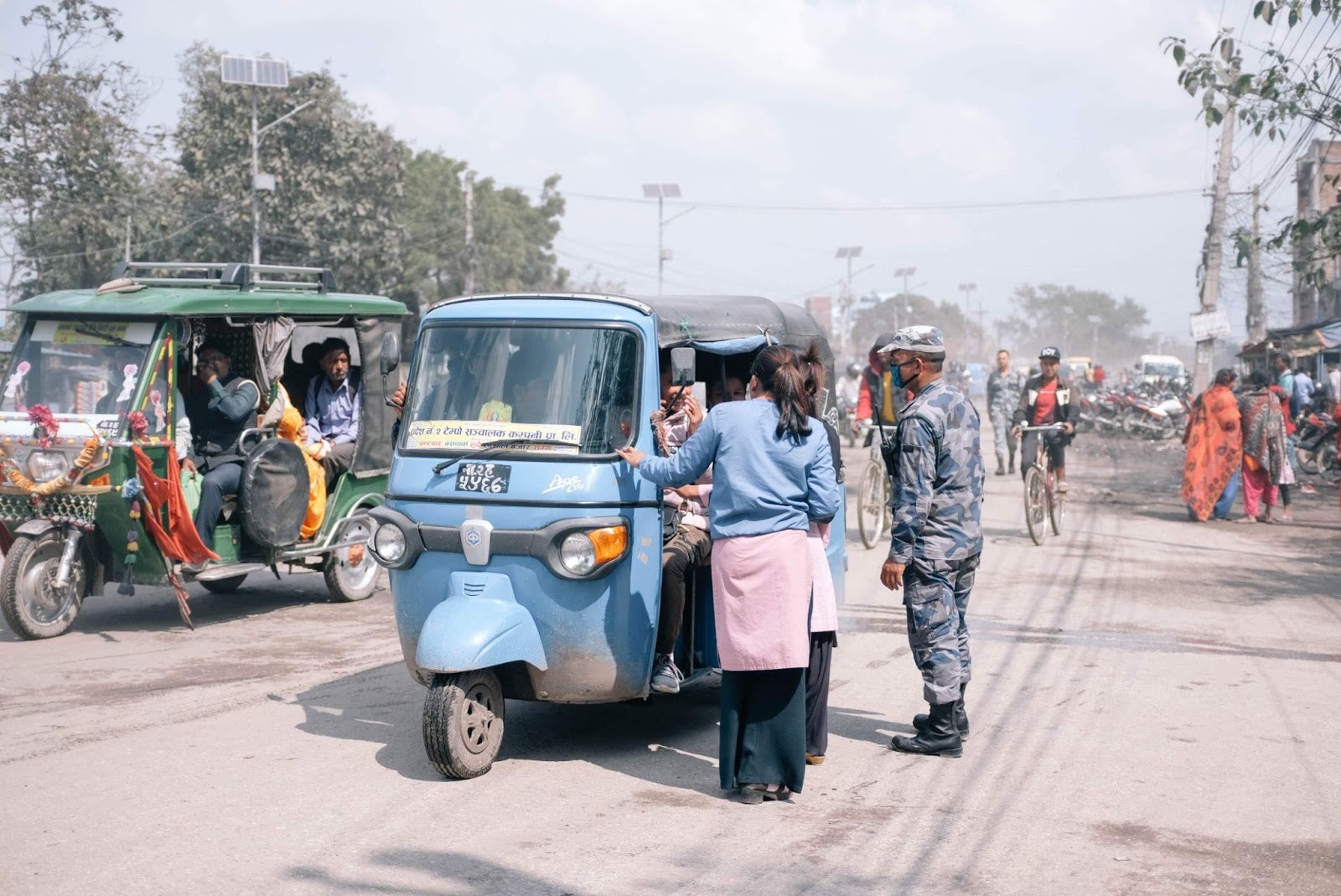 (上:ネパール側国境にて、NGO職員が検問している様子/下:ネパール側国境)