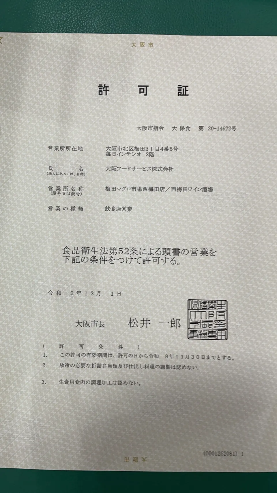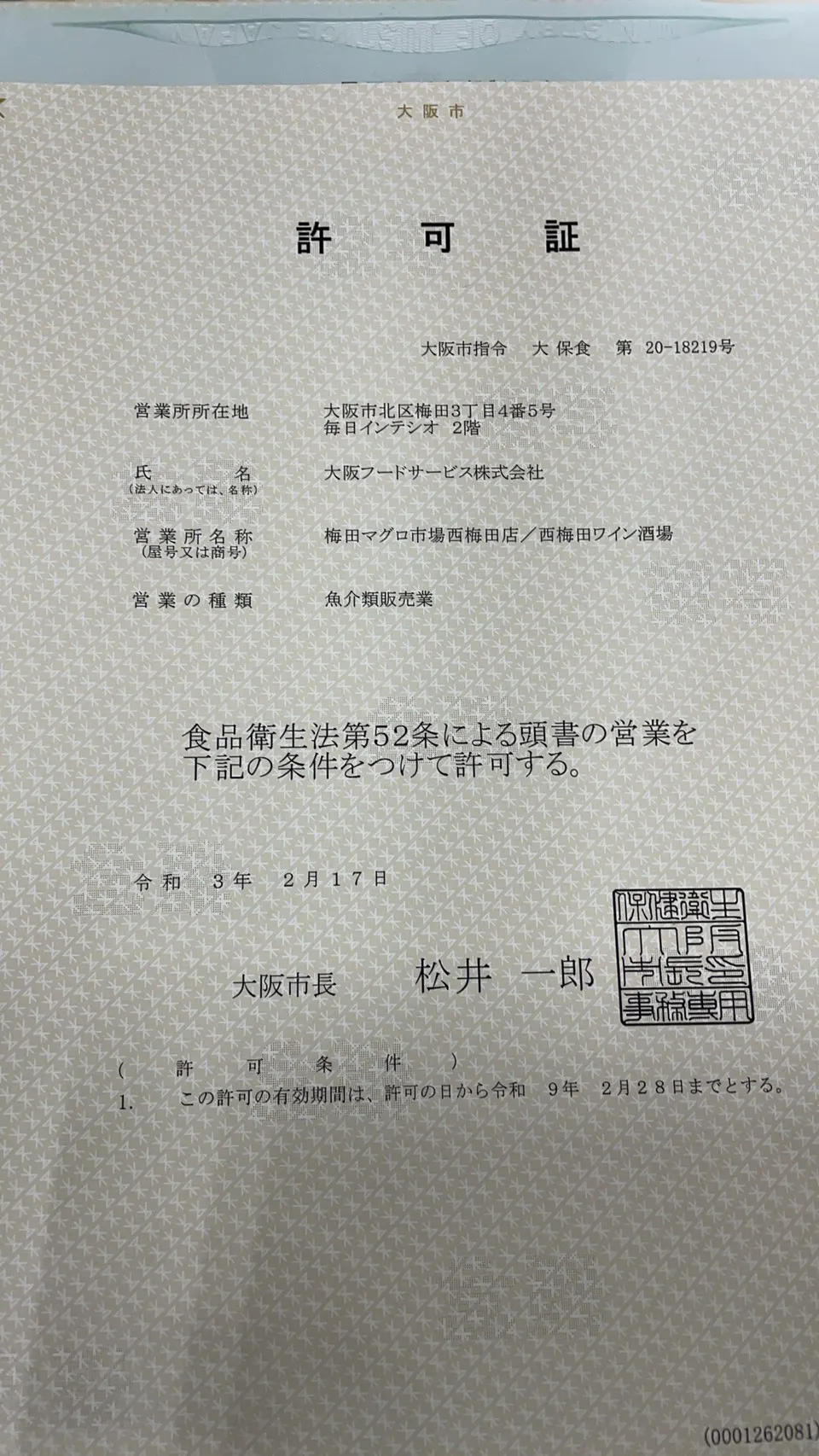 当店は魚の販売許可書および飲食店営業許可書は所得済みです。