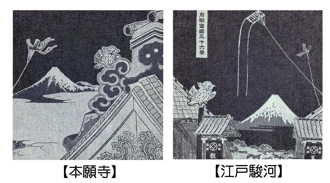 縁起ものとして知られるフクロウと富士山の組み合わせが