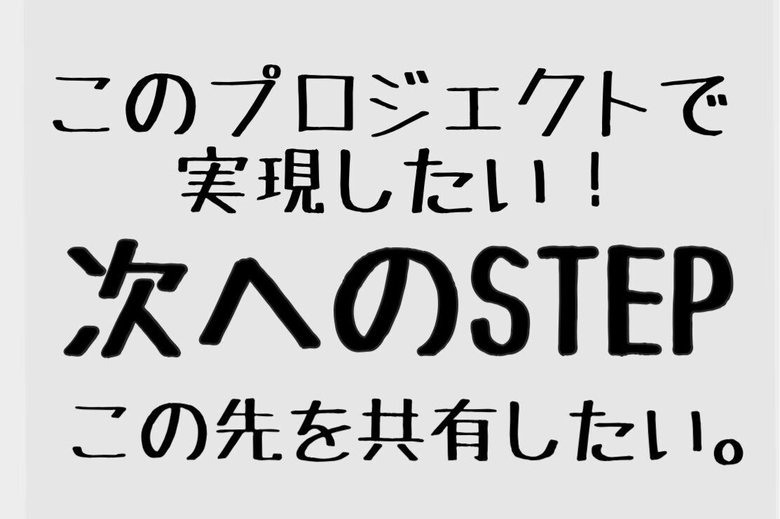 皆様のご支援を頂きこのプロジェクトが成功したら、次に繋げていきたい「ステップ2」についても伝えておきたい!