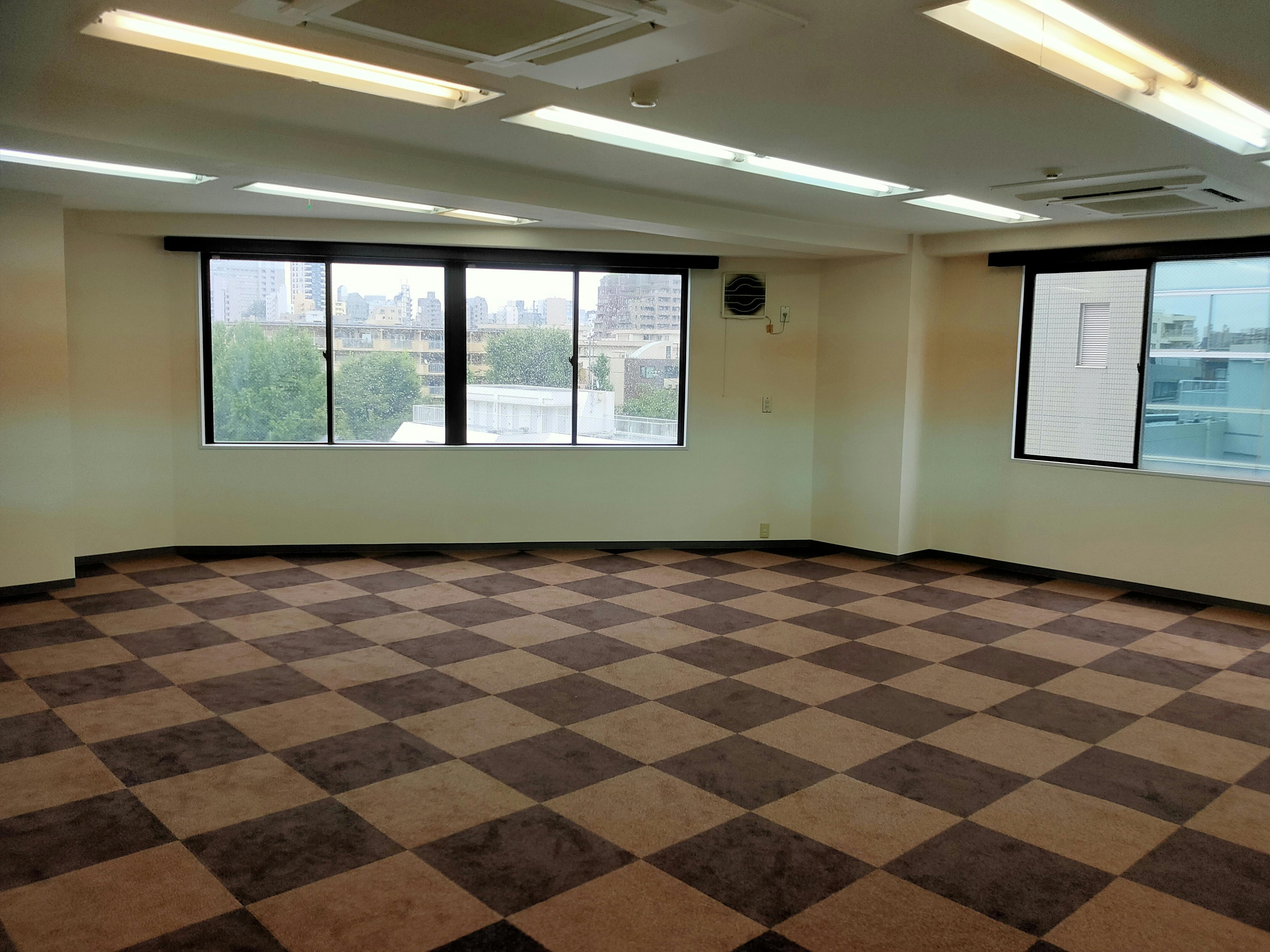 既に美しいチェスカラーのふかふかカーペットタイルが敷かれています!
