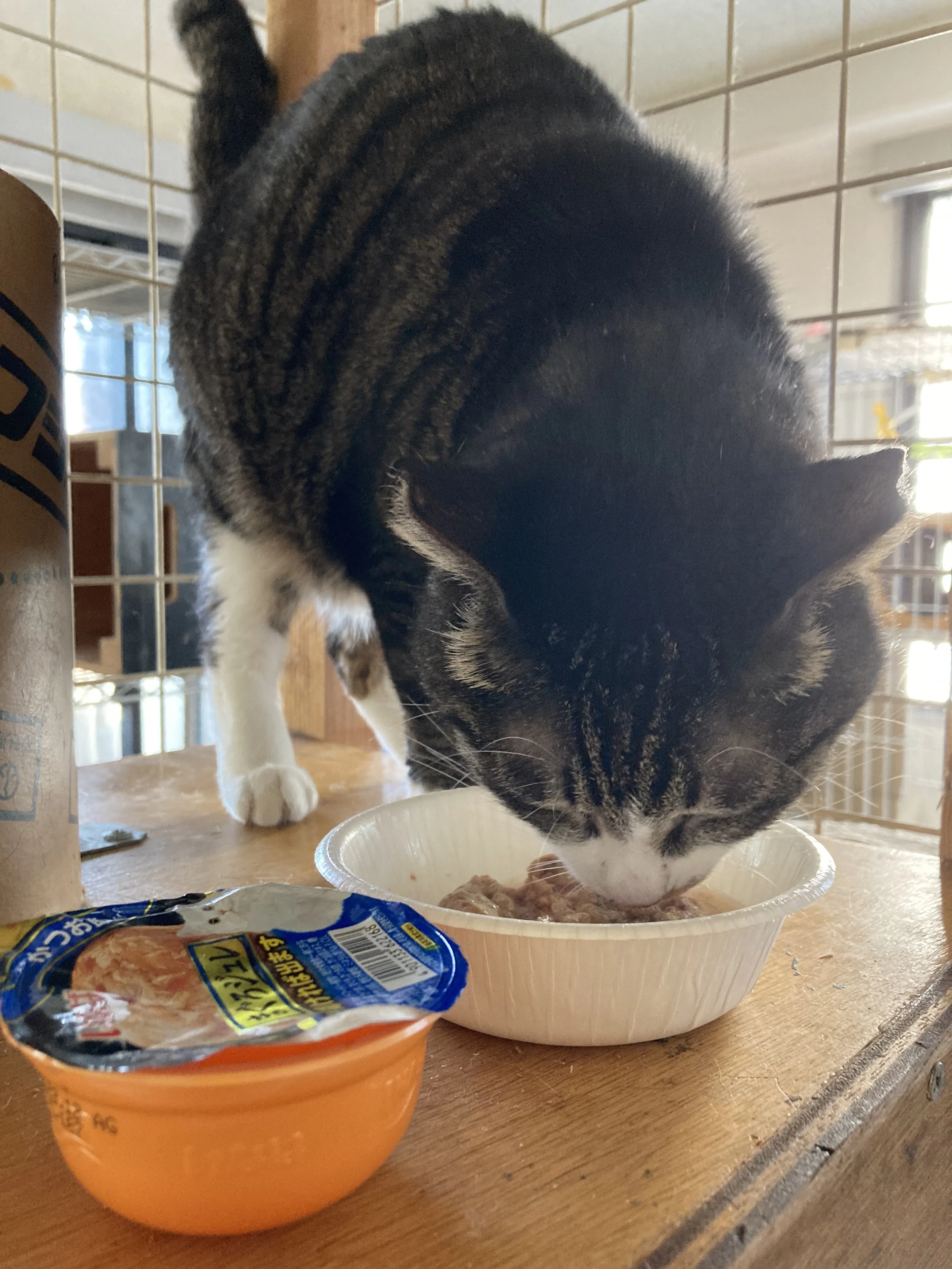 寂しげな目のこの子を見ると連れて帰りたくなります。餌やりさんを待っているみたい。時々ここにいます。↓ササミは食べません。パウチあげてます