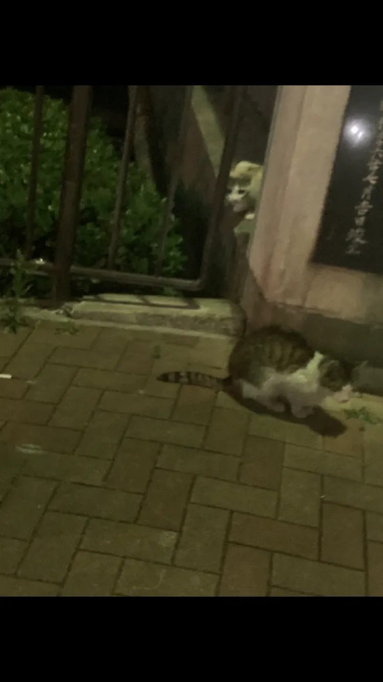 撫でたらトコトコと歩くけど、また、ジーとしてる。保護したくなり家にキャリーを取りに行き急いで戻っだけど居ない。am3:00まで辺りを探したけど会えませんでした。今夜は最初からキャリーを自転車に積みます。しかし、私の自転車はネコ達の間で有名です。