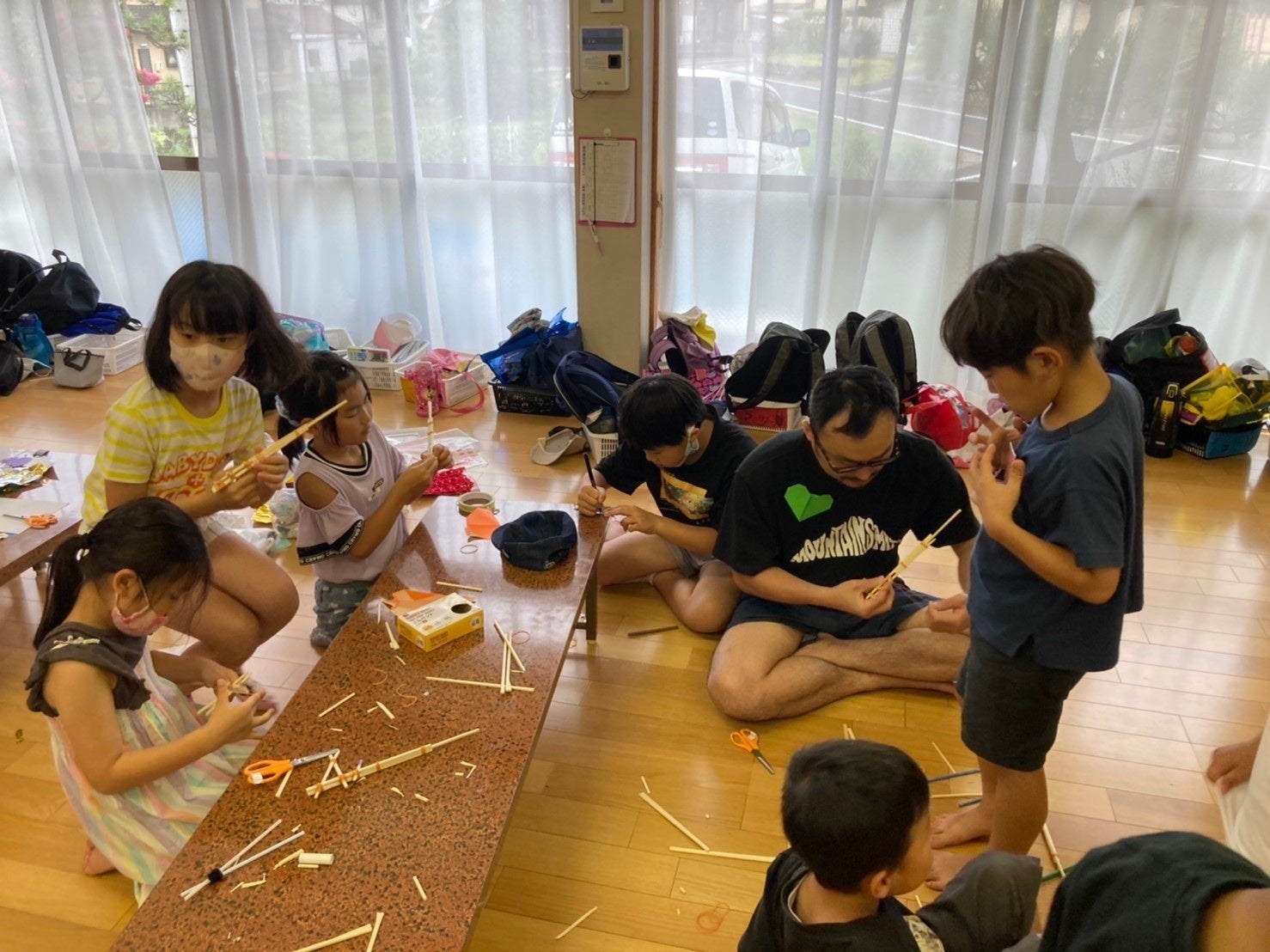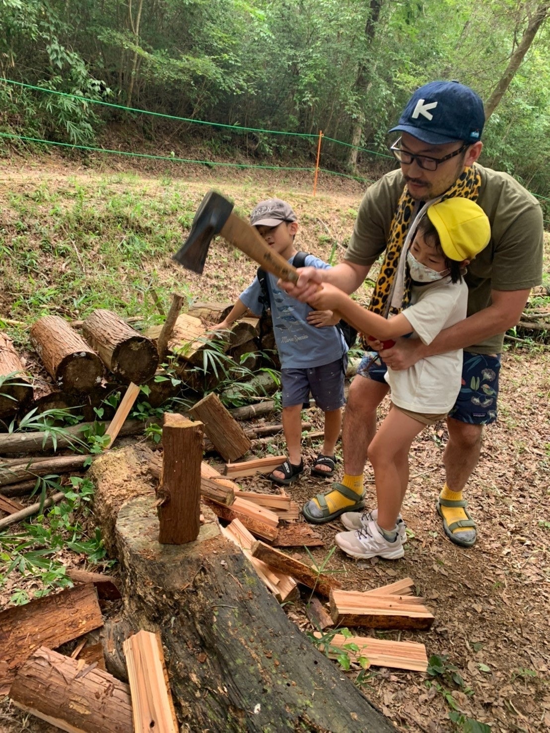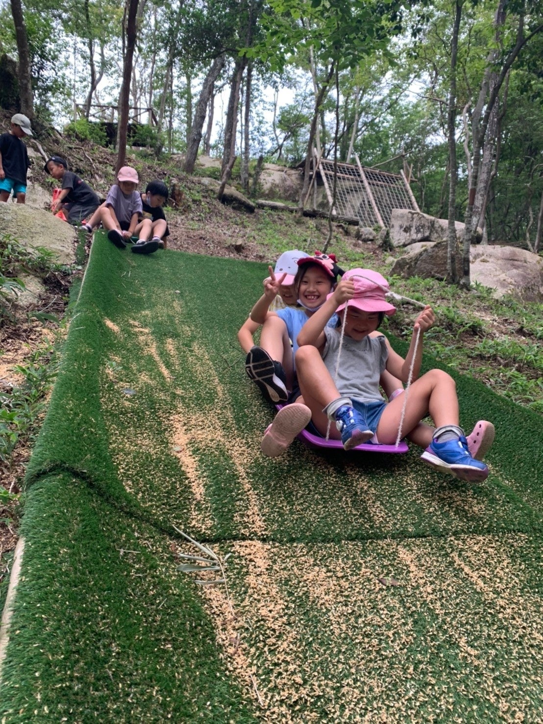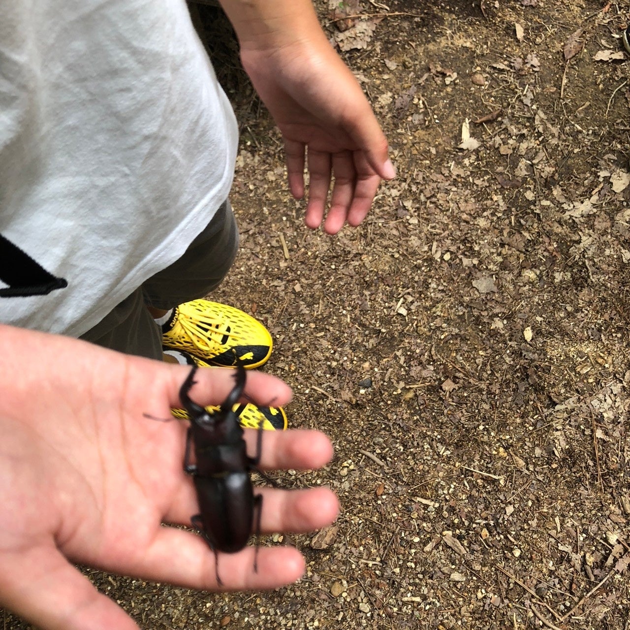 竜吟湖の『森のゆうえんち』に到着すると早速、クワガタを見つけて大はしゃぎ。探索をしてトカゲやカエル、蛍を見つけたり、アスレチックで遊んだり、それぞれ好きなことをして楽しんでいました。