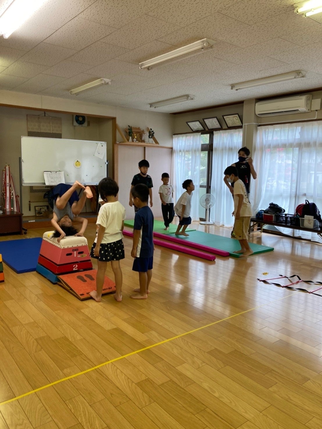 跳び箱は6段!!できないかもしれない…と不安そうな子もいましたが、ともくん先生の心強いサポートを受けて、挑戦する姿がかっこ良かったです!