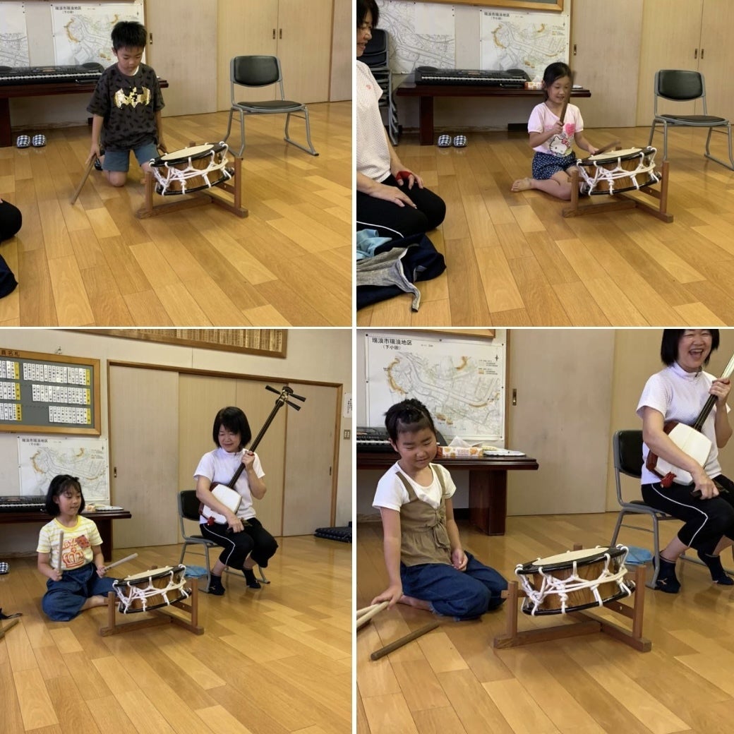 和楽器にちなんで、今日もかのちんが三味線演奏を披露。子ども達は合わせて太鼓を叩きましたよ!