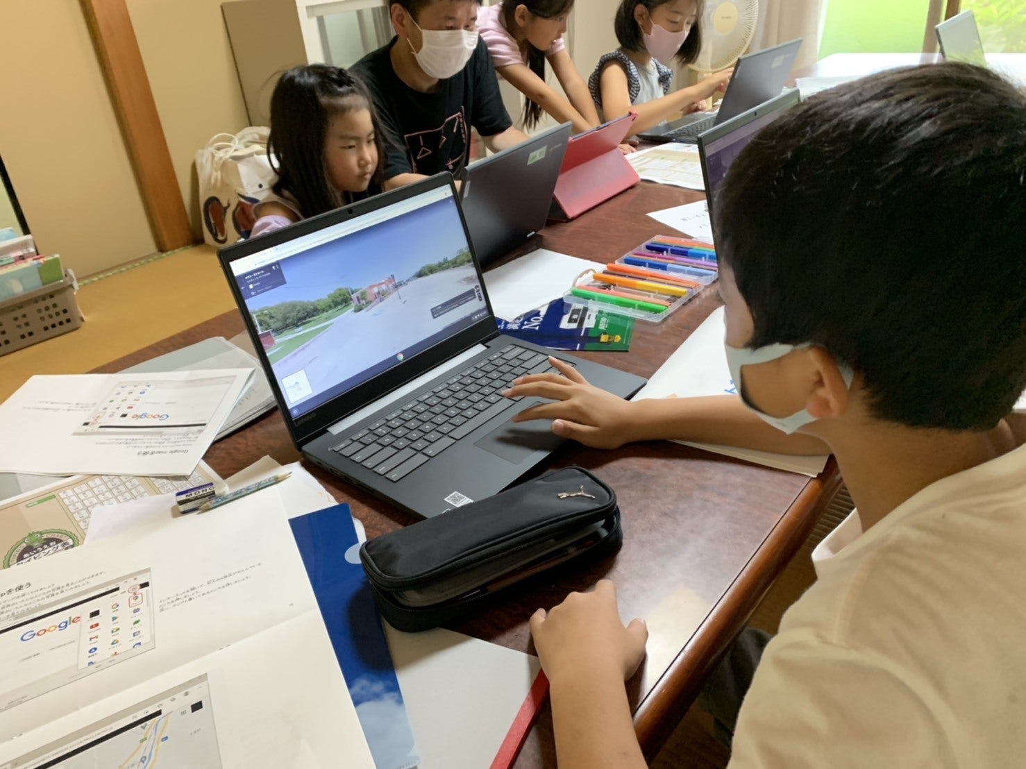 今回、子ども達は基礎を学んだ後、Googleマップの使い方を教えてもらいました。自分の家を探し、あった!!と、とても嬉しそうでしたよ。