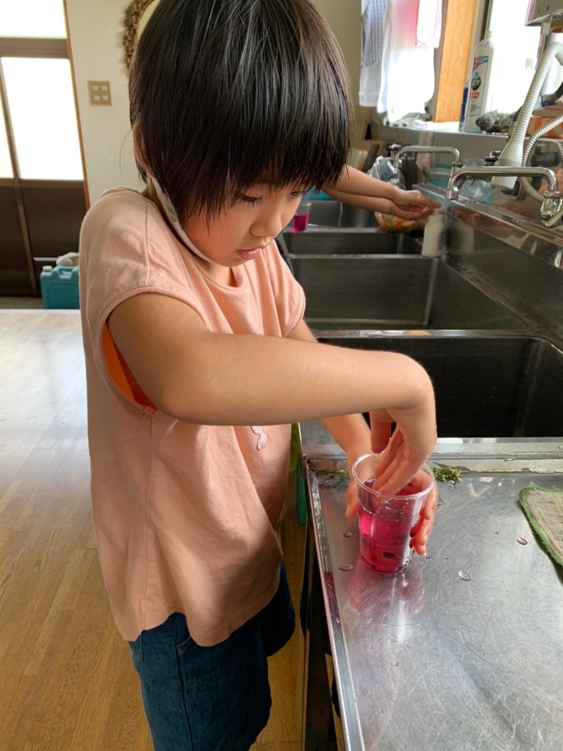 帰ってから早速、色水にして、染め出しをする子もいました。