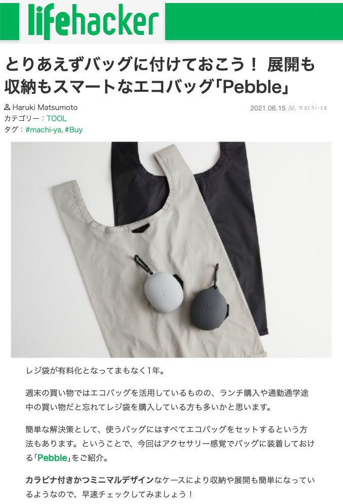 おりたたまないエコバッグ「Pebble」の応援、よろしくお願いいたします!