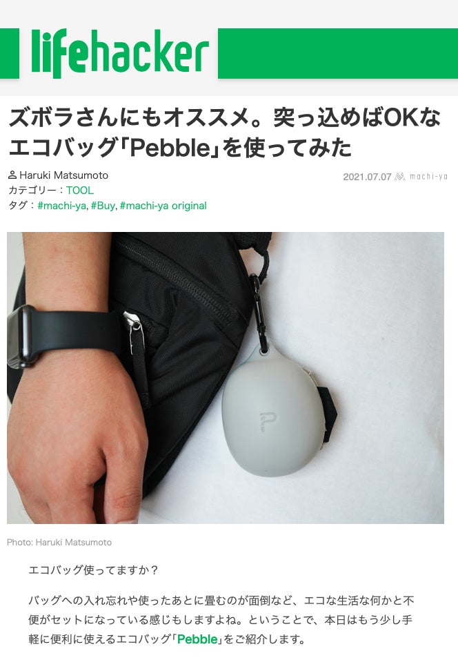 ライフハッカー内で、エコバッグ「Pebble」のレビュー記事をご掲載いただきました!https://www.lifehacker.jp/2021/07/machi-ya-pebble-review.html実際にメンズの方が使っていただいたリアルなエコバッグ事情をうかがい知れる、男性必見の内容になっています!特に、一人暮らし男性のリアルな買い物事情、どれだけ物が入るのかが一目でわかります!是非チェックしてみてください!引き続き応援、よろしくお願いいたします! https://camp-fire.jp/projects/view/440816SNSでも情報を発信していますのでぜひチェックしてみてください。LINE : https://lin.ee/f8z3hYAInstagram : http://instagram.com/koh_t_official/twitter : https://twitter.com/KoH_T_officialKoH Tクリエイティブチーム