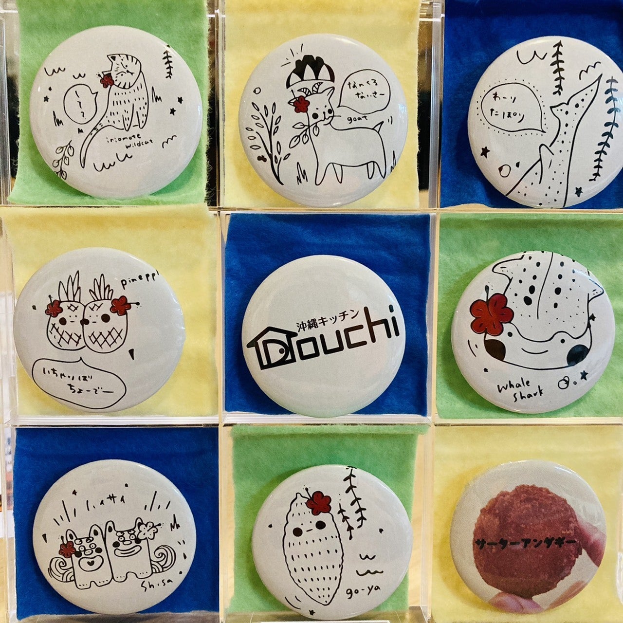 人気のTシャツの柄の缶バッチをご用意しました。