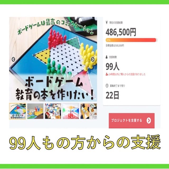 気づけば支援者の数が99人になっており、その数字を見ると改めて驚いております。