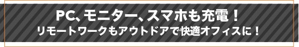 これだけの大容量の電力があれば、自然の中でパソコン作業を行うことも可能です。