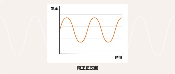 家庭用ACコンセントと同じなだらかな波動になります。安定して乱れがないためモーターがコンピュータで制御された電気機器に安全に使用できます。
