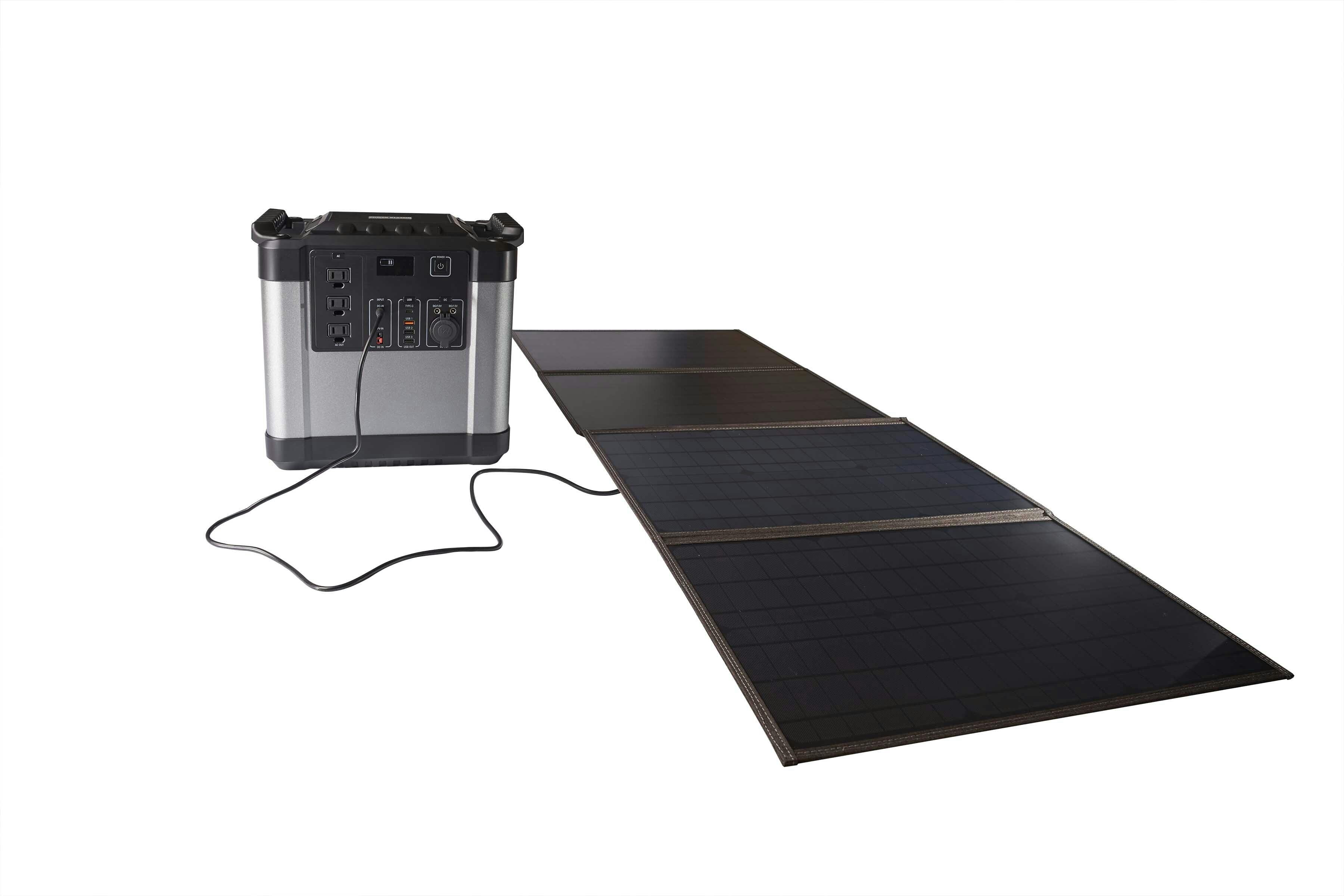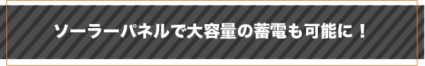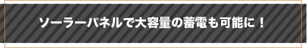 同時販売のソーラーパネルと一緒に利用することで、停電時も太陽光がある環境においては無制限に電力の供給が可能となります。