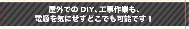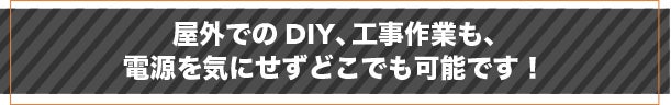 屋外での電気工具を使用した作業では、電源確保が常に課題となります。長いケーブルを這わせての作業は、安全面が心配されてきました。