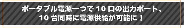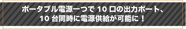 「MATERASポータブル電源」の出力ポートは全10口を配置。1DKのコンセントと電力がこの1台に収まっているのと同じ状態を実現しました。屋外、車中に自分の部屋の環境を構築可能です。