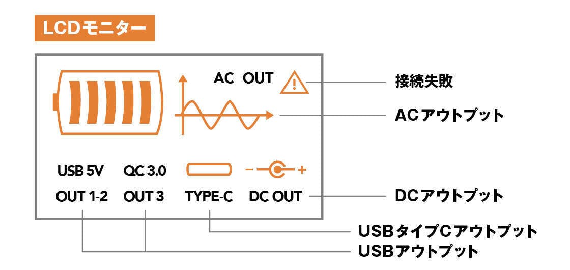 精密機器にも使える「純正正弦波※」を採用。安定した電力を供給できるため、パソコン、モニター、タブレット、スマホを繋ぐことができます。安心してアウトドアでの利用が可能に。