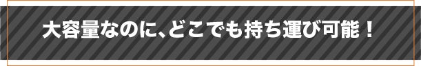 「MATERASポータブル電源」の重量は21Kg。2220WHの超大容量の電源を持ち運べます。