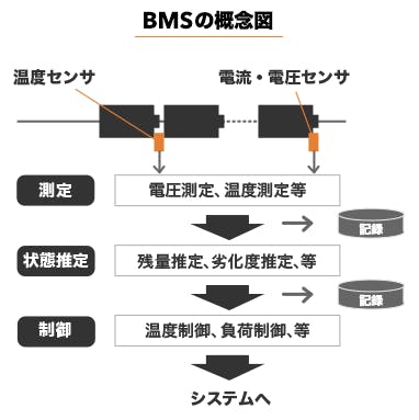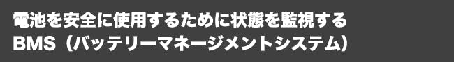 BMS(バッテリーマネージメントシステム)とは、電池の状態を監視・制御するシステムです。電池は誤った使い方をすると、発火や感電につながります。