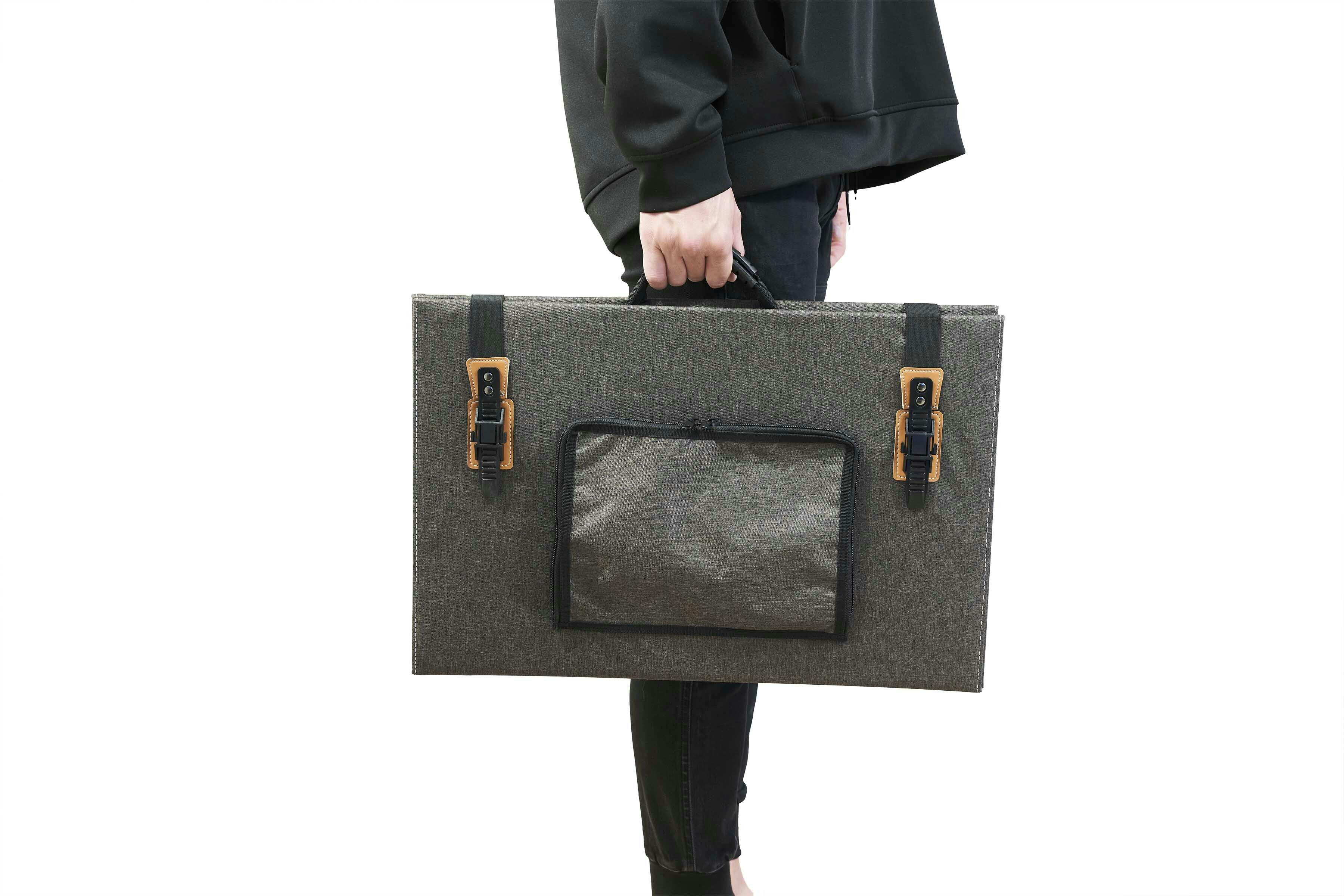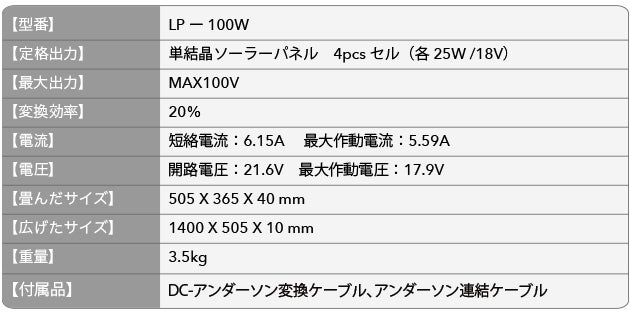 同時販売のソーラーパネルはコンパクトなサイズで手軽に持ち運べて、保管に場所を取りません。