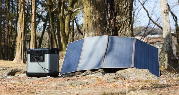 今回のポータブル電源はソーラーパネルを連結することで2台同時充電が可能に。より多くの太陽光を取り込めます。