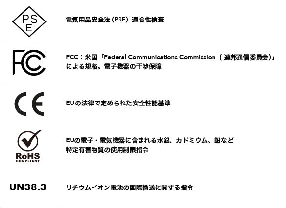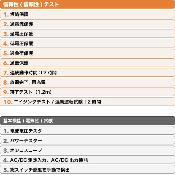 「MATERASポータブル電源」は各種製品テスト、性能試験に合格しています。