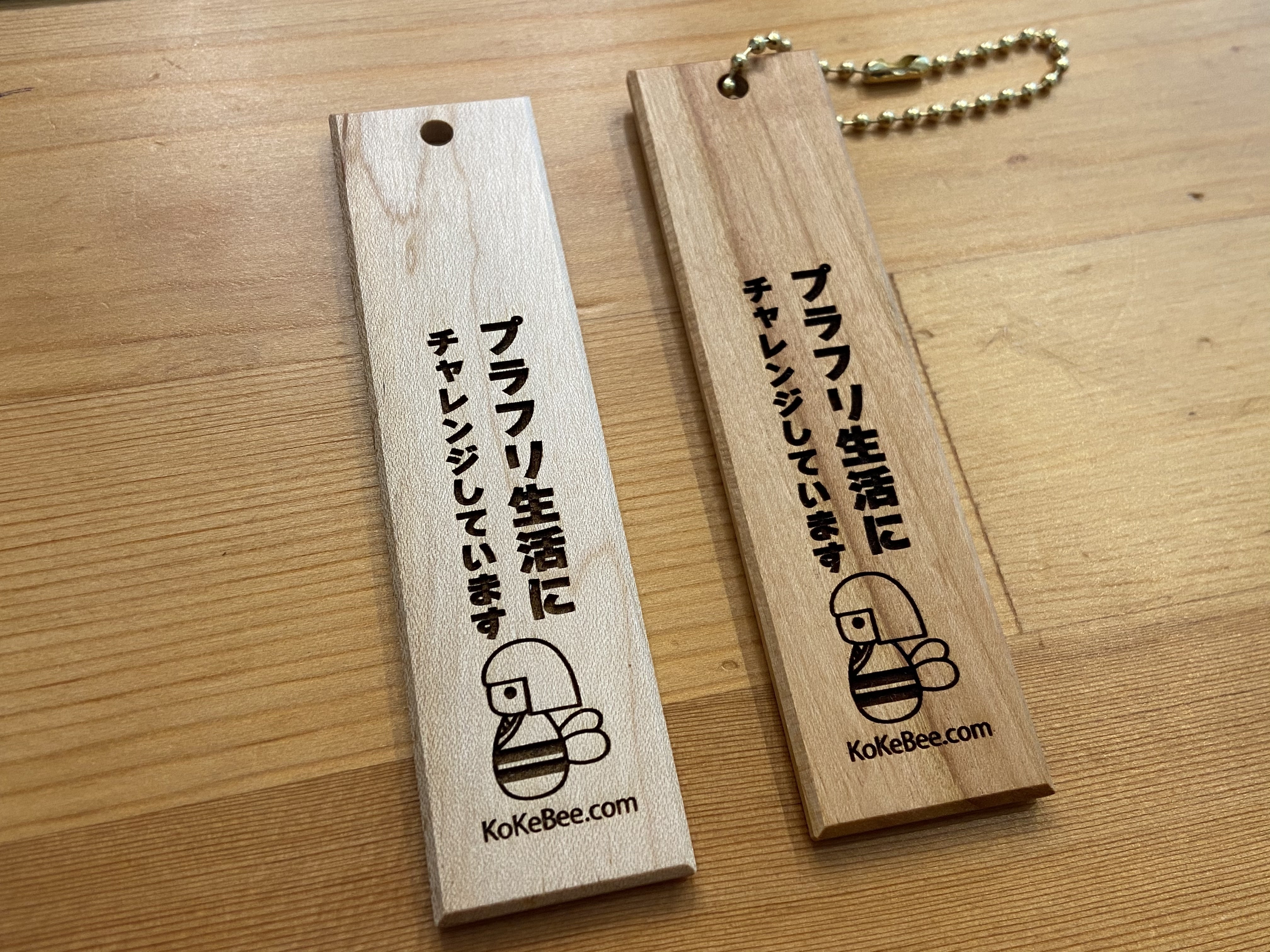 さて、今日はリターン品の「プラスチックフリー生活にチャレンジしています」キーホルダーのサンプルが到着したのでご報告です!