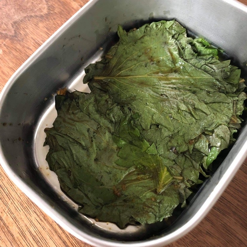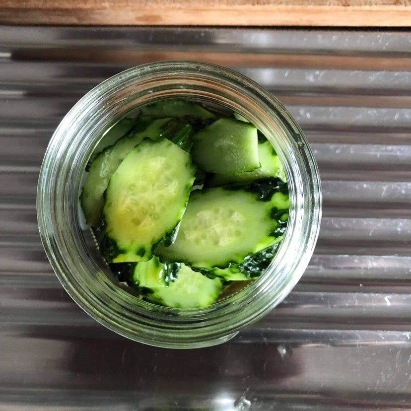 畑でとれたきゅうりと大葉を保存食に。