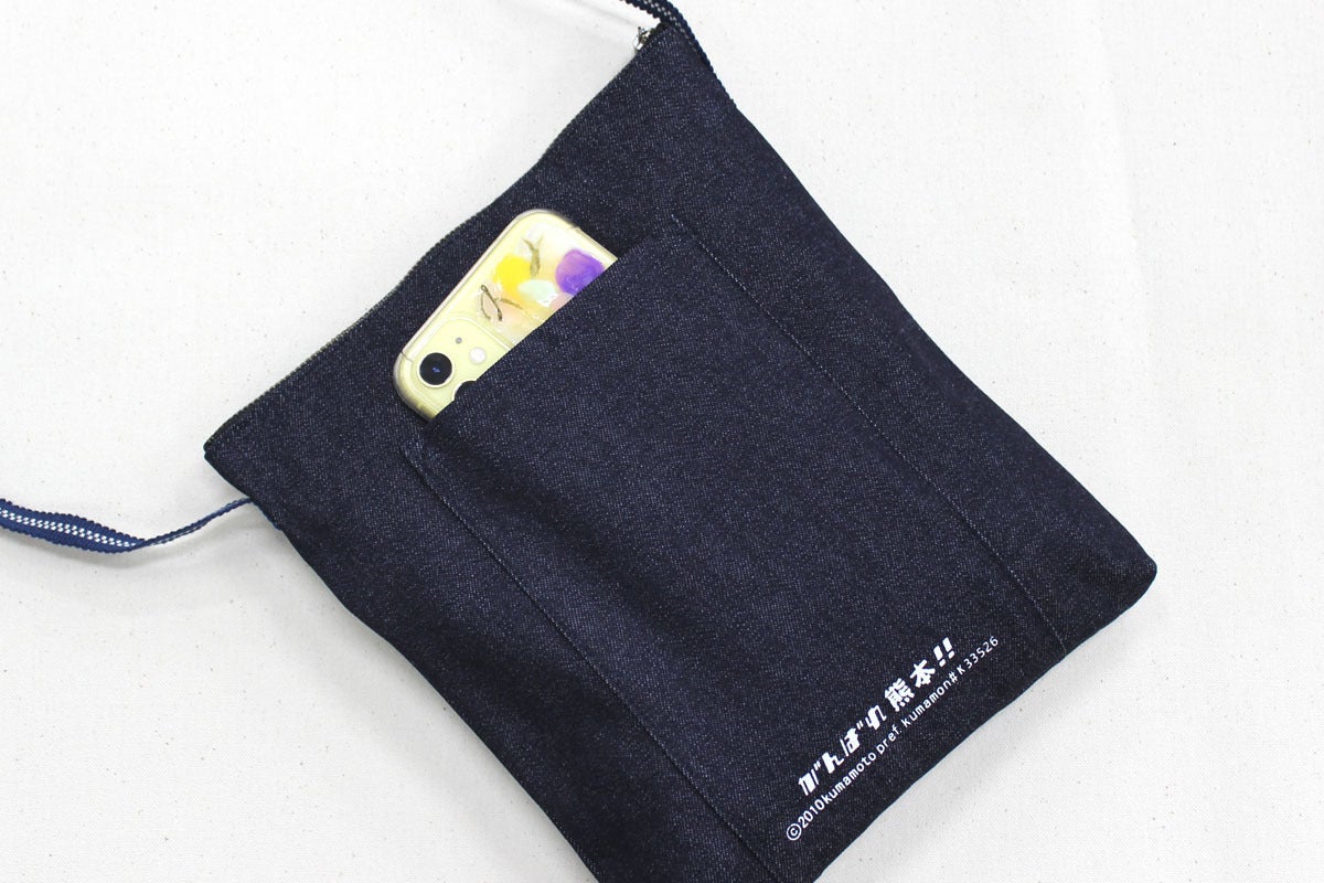 リターン商品は、デニムショルダーポーチ(くまモン柄)です。