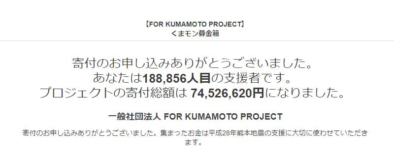 昨日、キャンプファイヤー様から支援金のお振込みをして頂き、