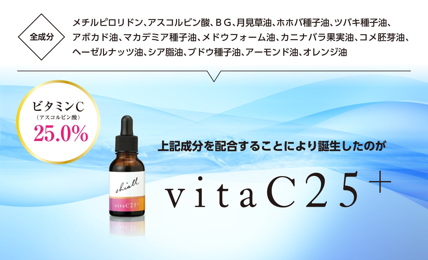 「もっとこうだったらいいのに!」という想いから、わたし自身が納得できる、綺麗になれる美容液を作りたいと思い「vitaC25+」の開発を始めたのです。