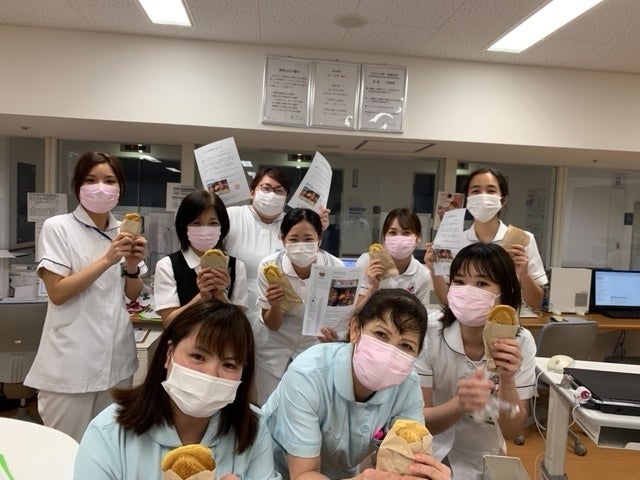 なにわ生野病院には約350名の職員の方々がいらっしゃるとの事で、これまでに合計「たい焼き350匹」「マスクバンド175本」をお届けしました。