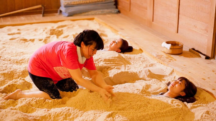 「恵みの湯」の施設内にあり、砂塩風呂が使用できる日帰り温泉は非常に珍しく、砂塩風呂の利用で血行を促し、新陳代謝の促進と自然治癒力の向上などが期待されます。