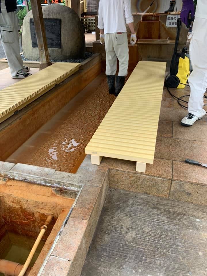 午後は毎月恒例の足湯の掃除でした(^^)写真はその様子です。