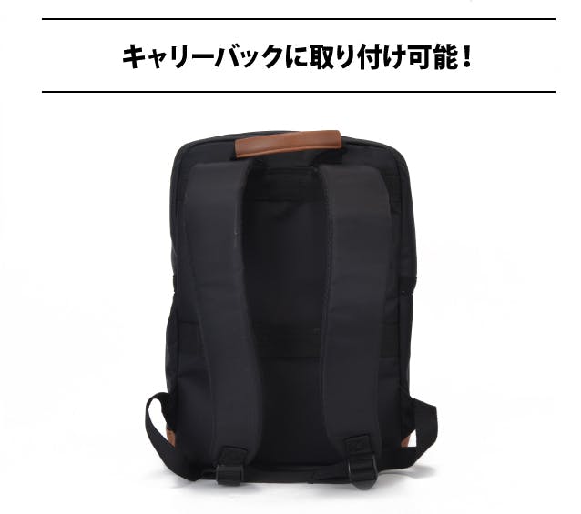 背面にはキャリーケースベルトを装備、海外旅行など荷物が多いときでもキャリーバッグに引っ掛ければ、移動が楽になります。