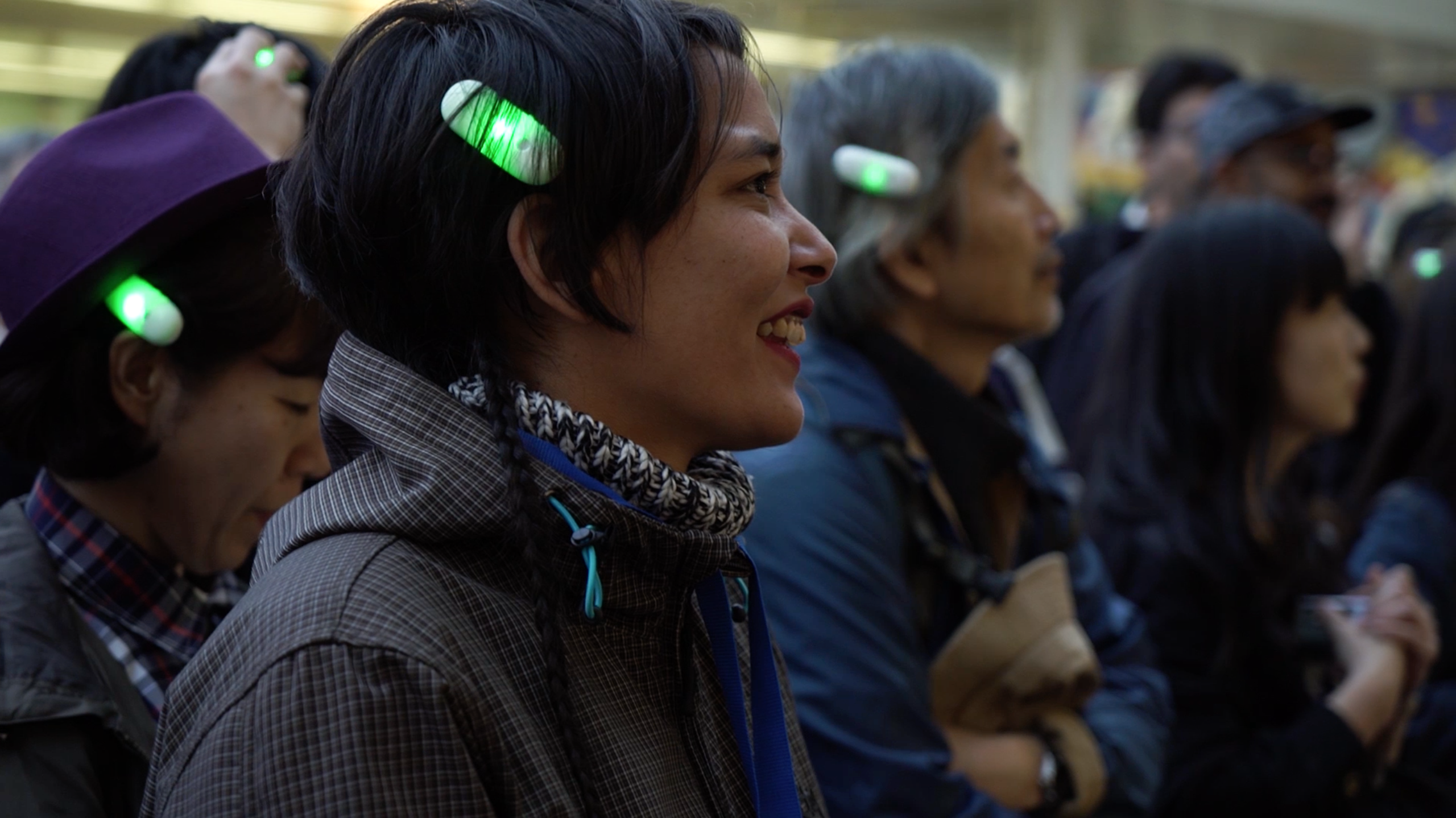 音の特徴を振動と光に変換する装置(オンテナ/富士通)を使用し、LEDビジョンを通してみなさんに躍動感を伝えることにより、ろう者の方にも音を体で感じていただき、