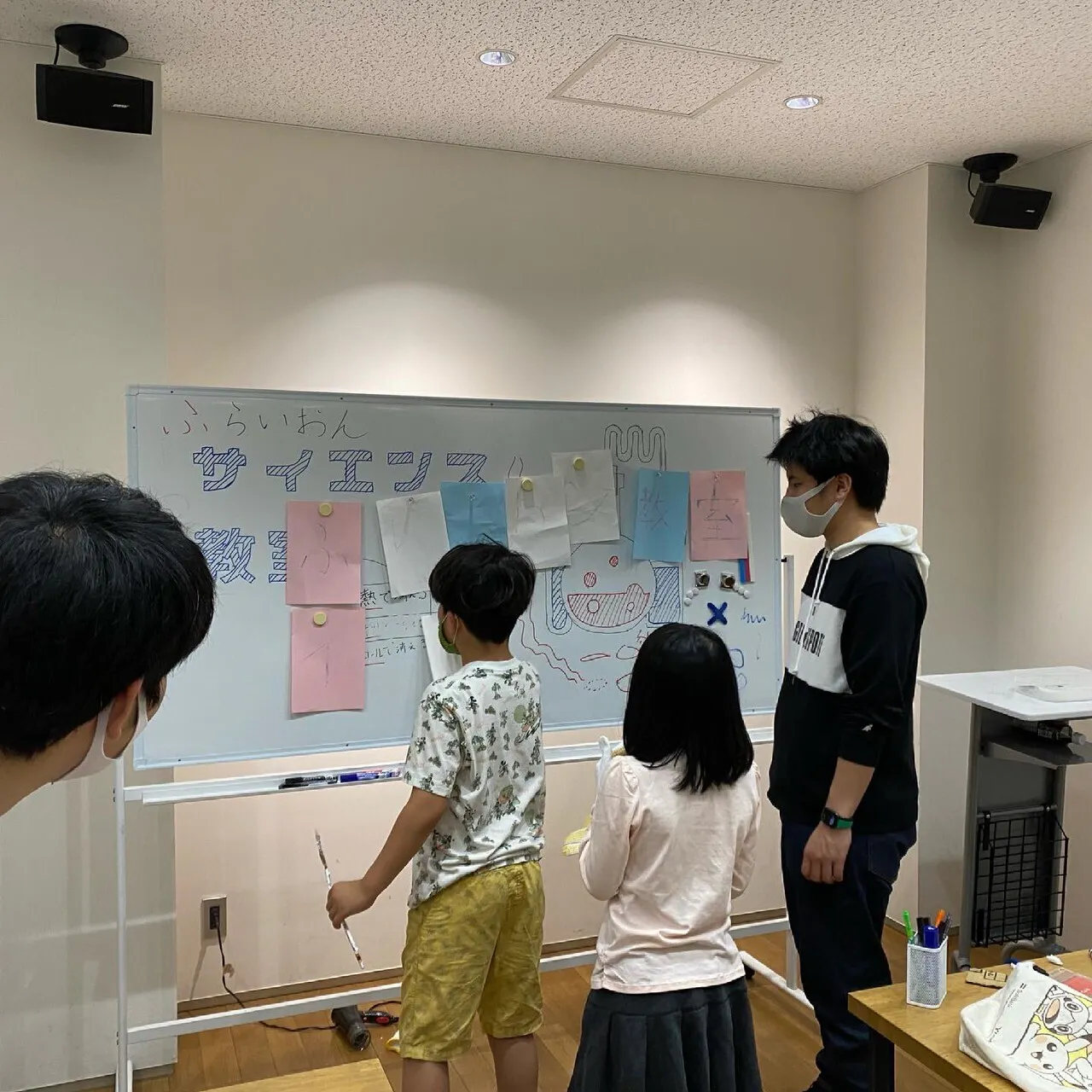 「無料学習塾 ふらいおん」は、平日の勉強支援活動に加え、土曜日の開講日を利用して「プログラミングイベント」や「サイエンスイベント」、「イラストイベント」等を開催しており、どれも大変好評でした!単発・無料で行っているのが特徴です。 開催は、一月に一回のペースで行っております。