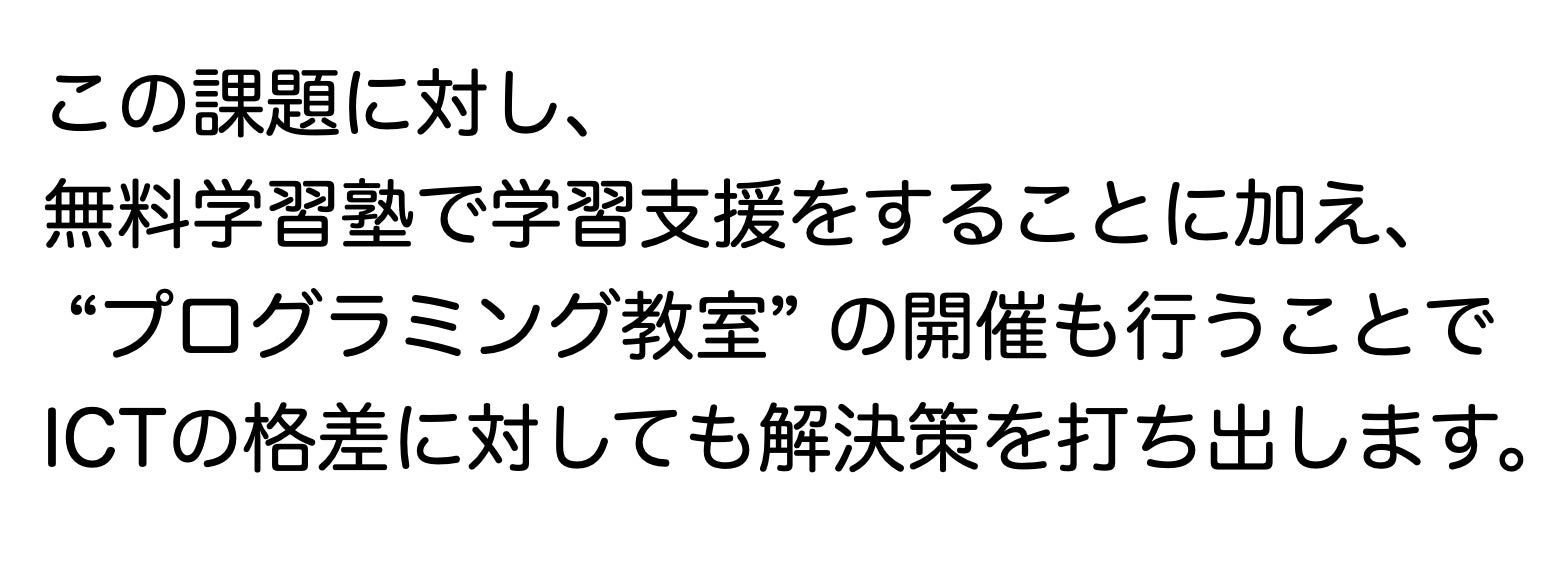 「経済的な事情で学習塾に通えず、学校以外で学びの機会を得ることができない子どもや、家庭で子どもへの学習指導が十分で無いことが原因で勉強が遅れてしまった子どもたちを支援したい…」