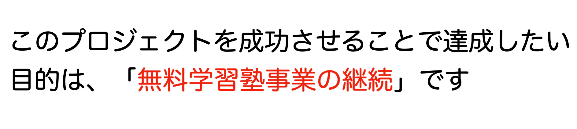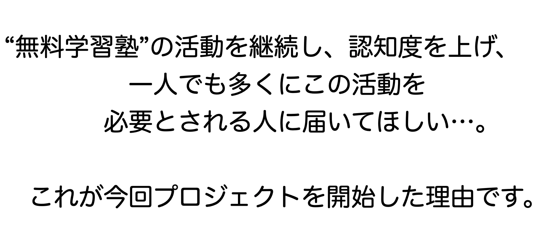 そのため、今回のプロジェクトでいただいた資金は、 塾の運営のために大切に使わせていただきます(詳細は「資金の使い道」の項目に記載しております)。