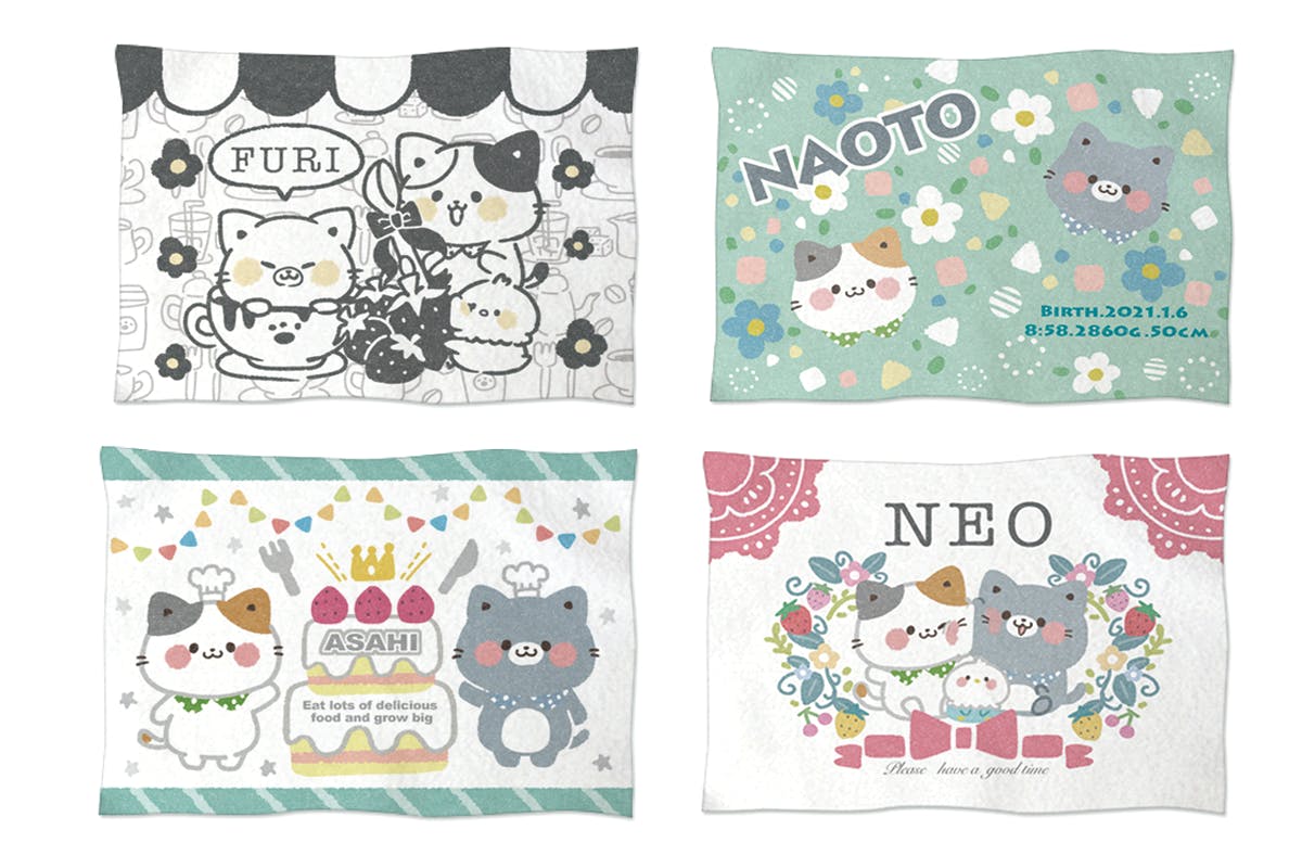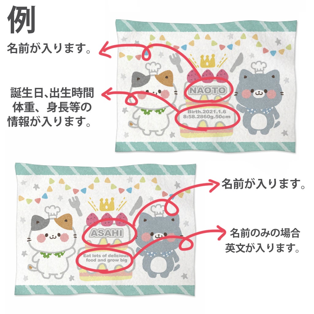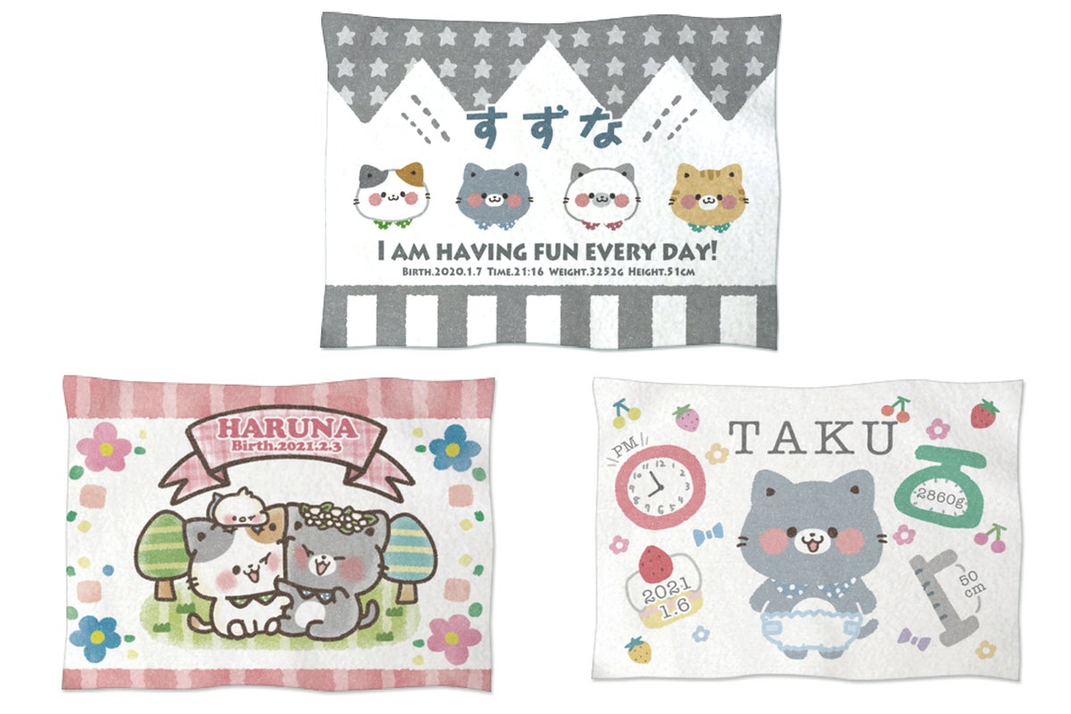 販売するブランケットは名前のみや名前+出生時間、身長体重、誕生日などもいれることができます。