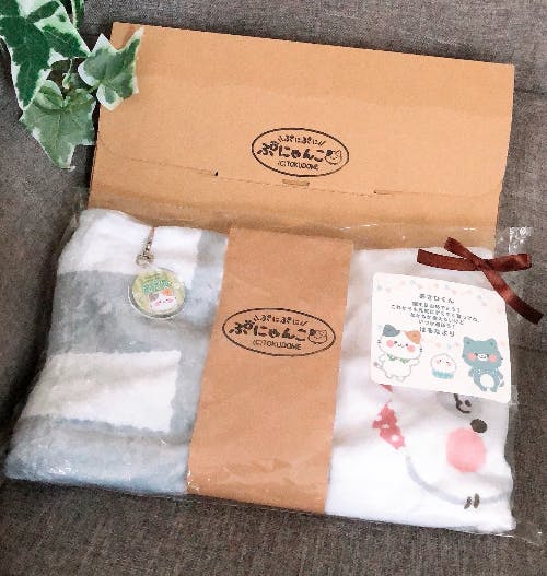 200,000円 お礼状・ポストカード7枚・はんかち1枚・名前入りはんかち1枚・キーホルダー1個・シール2枚・ミニメガネ拭き1枚・名前入りブランケット2枚・名前なしブランケット1枚・コースター1個・ポーチ1個