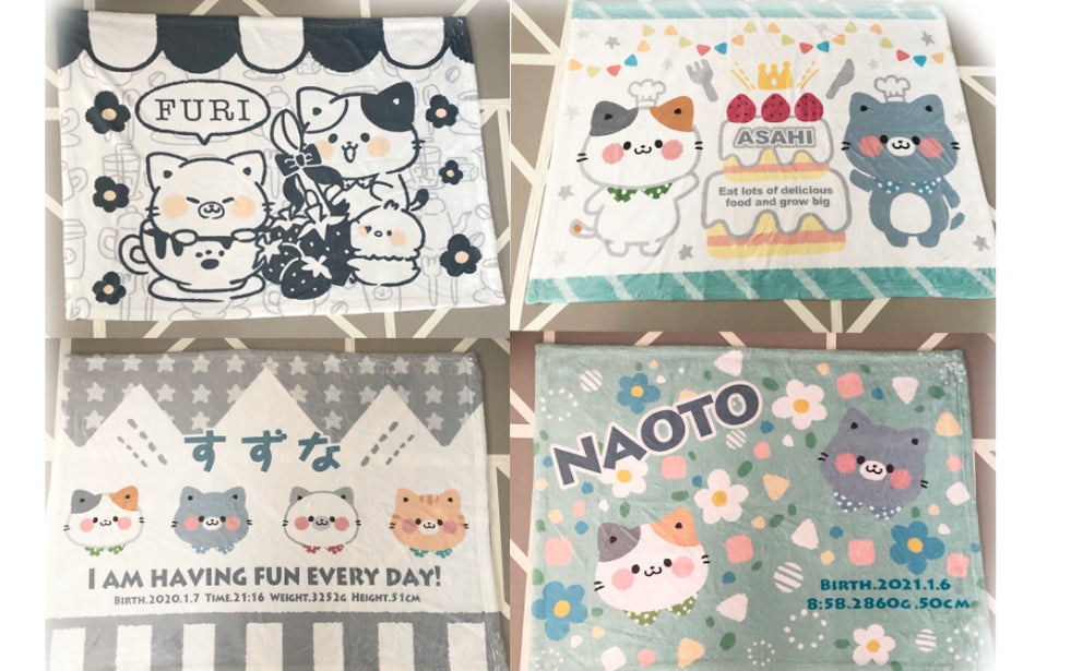 私の販売する予定のブランケットは名前のみもOKですが、名前・体重・身長・出生時間・誕生日も入れられる選択ができるようにする予定です。
