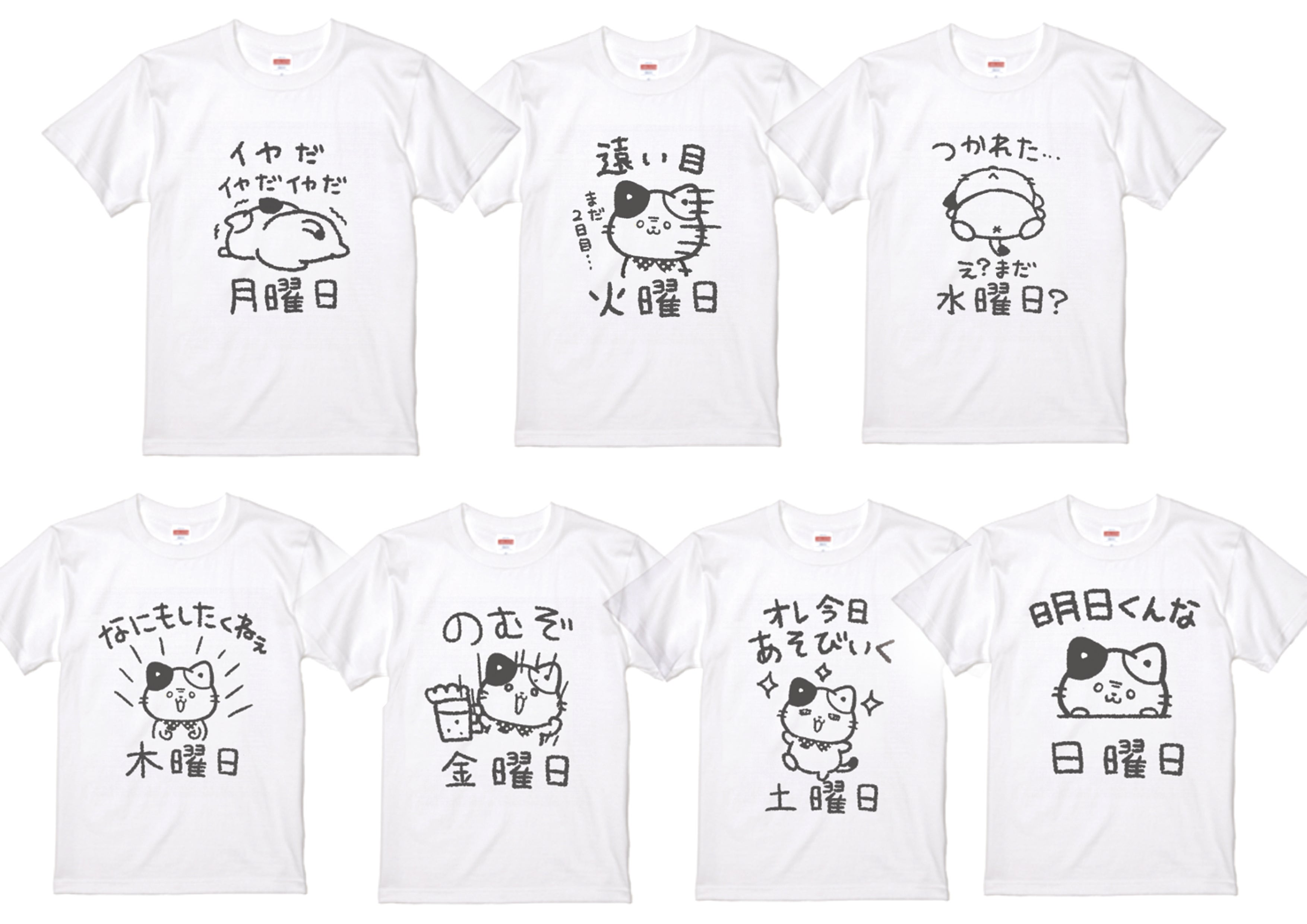 おもしろ曜日Tシャツ7枚セットいかがでしょうか。