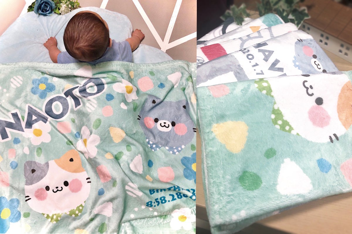 初めての出産でした。色々なお祝いをいただいたのですが、出産祝いで友達から名前・体重・身長・出生時間・誕生日入りのブランケットを頂きました。