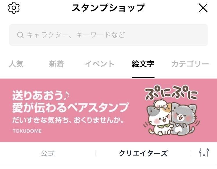 LINEスタンプショップにてぷにゃんこのバナーが表示されているみたいです。