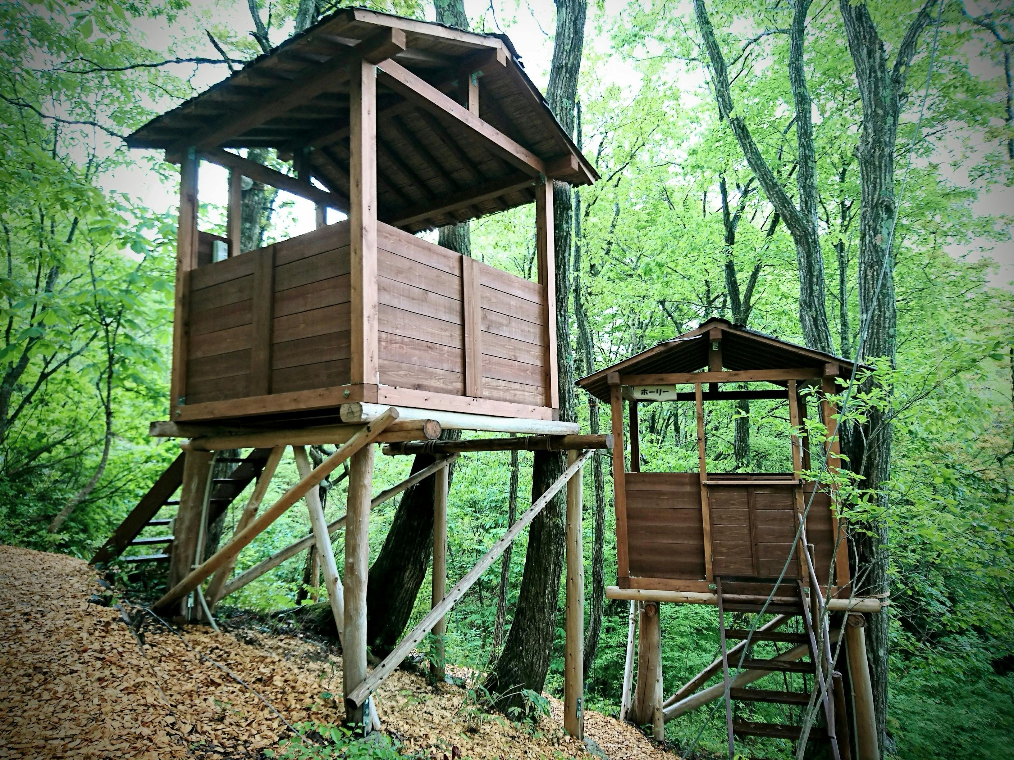 ツリーハウスは、それを思い出させた。園内には作るけど園内からは見えない場所、入ると高くて怖いように見えるが、安全性は確保できること、外で食事している解放感があること、でも注文は電話出来る事等々、色んな問題点をクリアーして実現にこぎつけた。