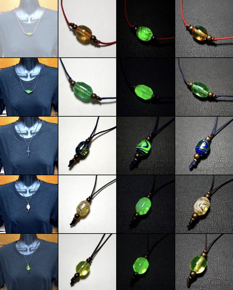 暗闇で輝くガラスのペンダントを